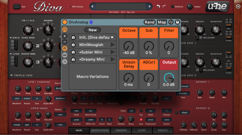 DivAnalog - U-He Diva's default preset replica in Live's Analog