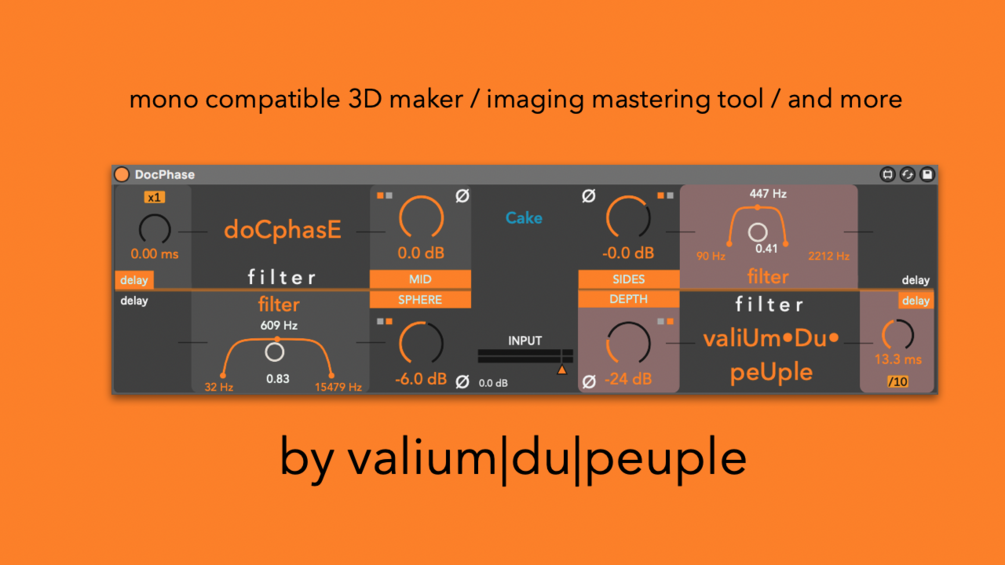 DocPhase is a M4L reproduction of the best spatialization/stereo widener/MS tool ever, DrMs by Mathew Lane.